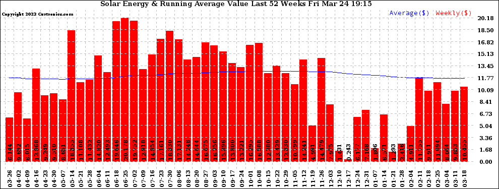 20230324 Weekly Solar Energy Production Value Running Average Last 52 Weeks