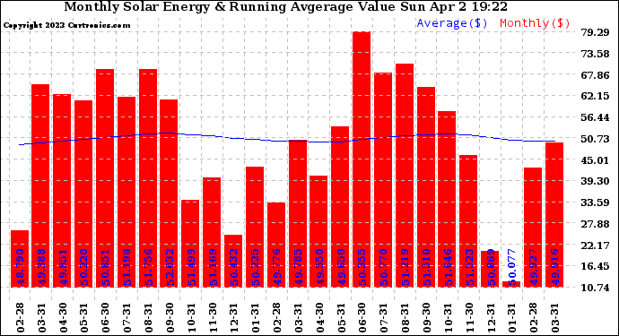 20230402 Monthly Solar Energy Production Value Running Average