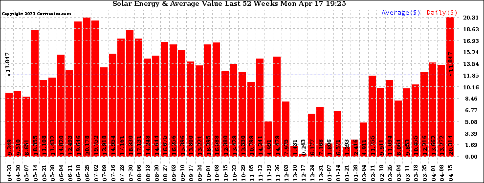 20230417 Weekly Solar Energy Production Value Last 52 Weeks