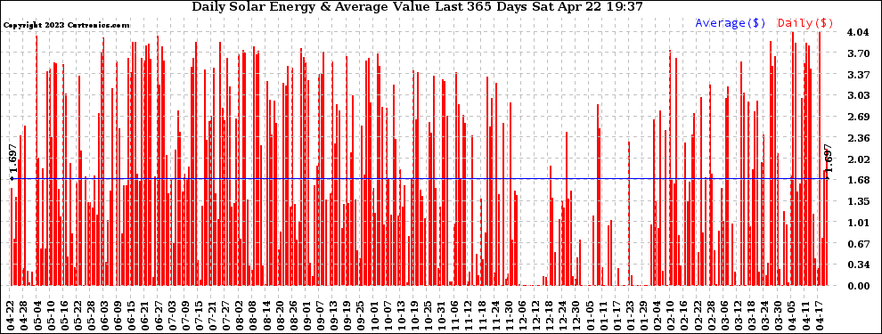 20230422 Daily Solar Energy Production Value Last 365 Days