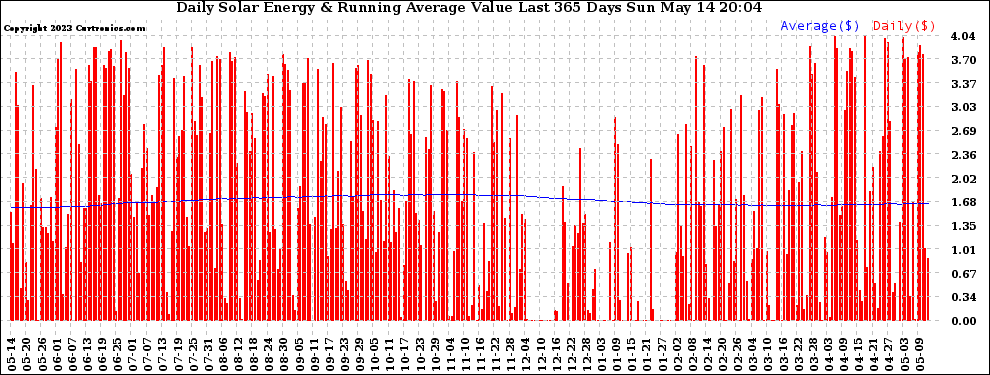20230514 Daily Solar Energy Production Value Running Average Last 365 Days