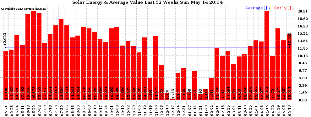20230514 Weekly Solar Energy Production Value Last 52 Weeks