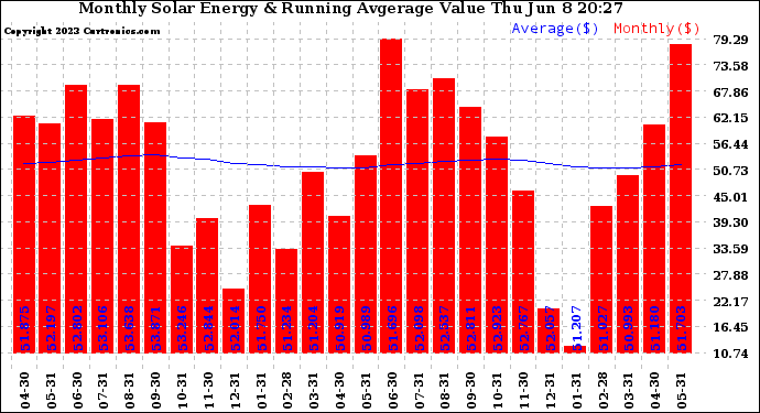 20230608 Monthly Solar Energy Production Value Running Average