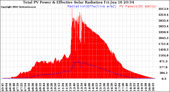 20230616 Total PV Panel Power Output & Effective Solar Radiation