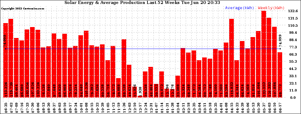 20230620 Weekly Solar Energy Production Last 52 Weeks