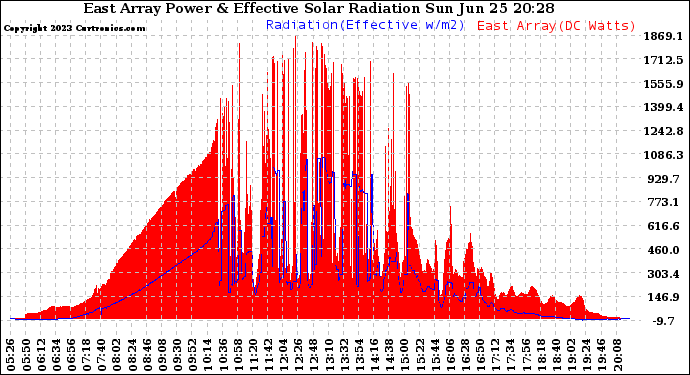 20230625 East Array Power Output & Effective Solar Radiation