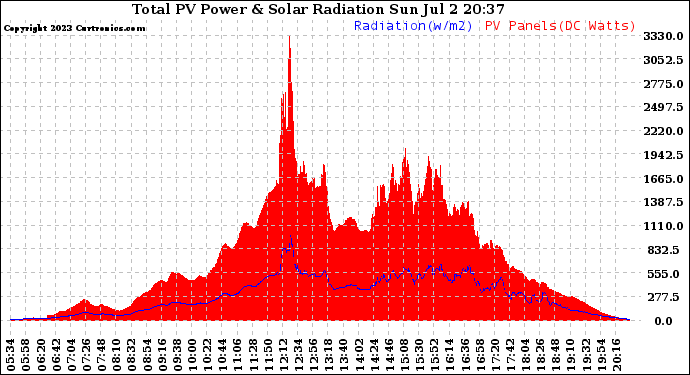 20230702 Total PV Panel Power Output & Solar Radiation