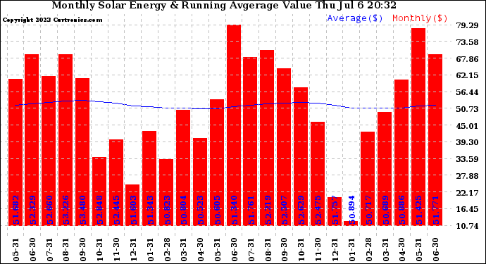 20230706 Monthly Solar Energy Production Value Running Average