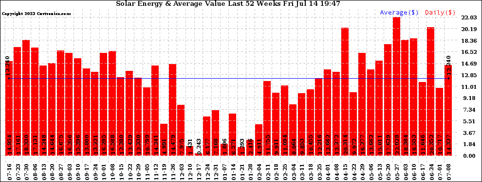 20230714 Weekly Solar Energy Production Value Last 52 Weeks