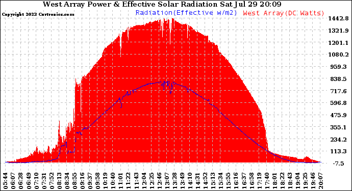 20230729 West Array Power Output & Effective Solar Radiation