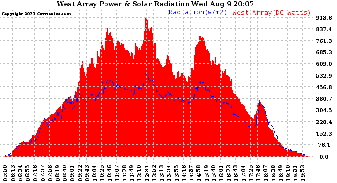 20230809 West Array Power Output & Solar Radiation