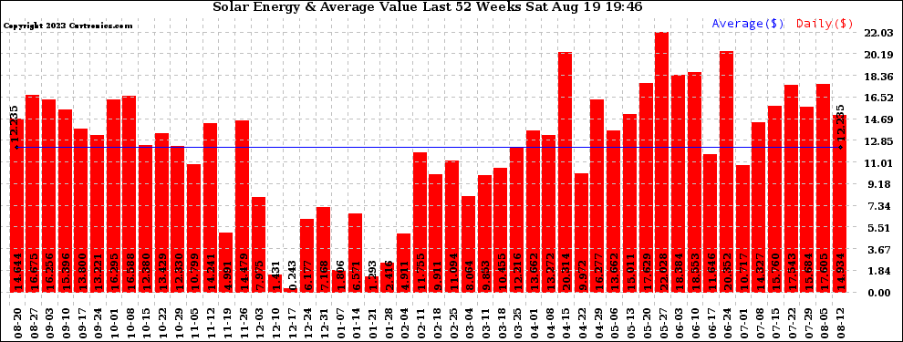 20230819 Weekly Solar Energy Production Value Last 52 Weeks