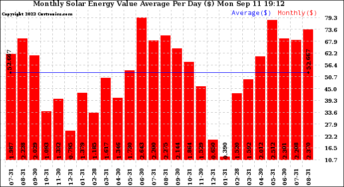 20230911 Monthly Solar Energy Value Average Per Day ($)