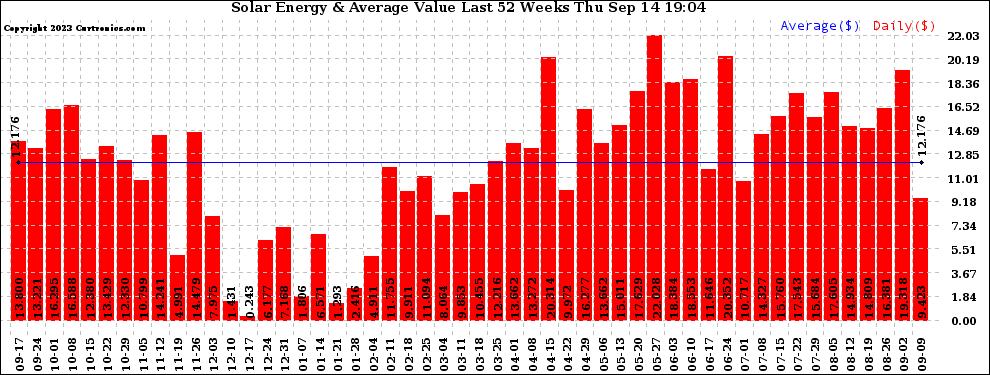 20230914 Weekly Solar Energy Production Value Last 52 Weeks