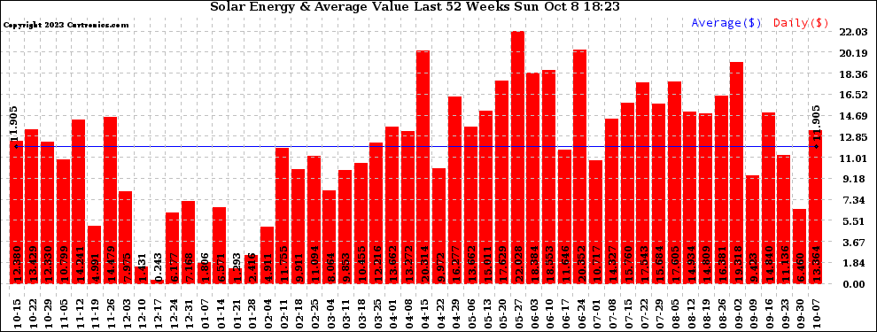 20231008 Weekly Solar Energy Production Value Last 52 Weeks