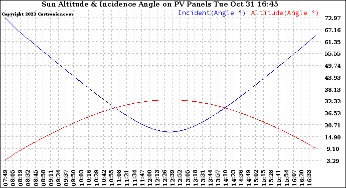 20231031 Sun Altitude Angle & Sun Incidence Angle on PV Panels