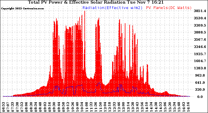 20231107 Total PV Panel Power Output & Effective Solar Radiation