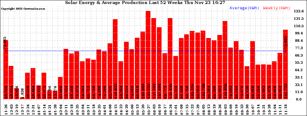 20231123 Weekly Solar Energy Production Last 52 Weeks