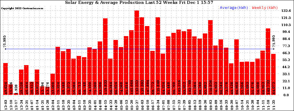 20231201 Weekly Solar Energy Production Last 52 Weeks
