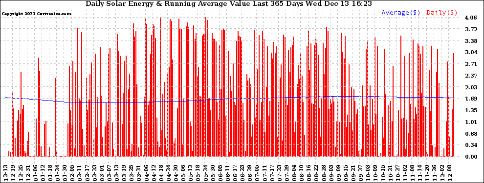20231213 Daily Solar Energy Production Value Running Average Last 365 Days