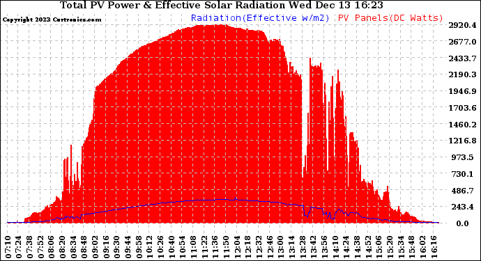 20231213 Total PV Panel Power Output & Effective Solar Radiation