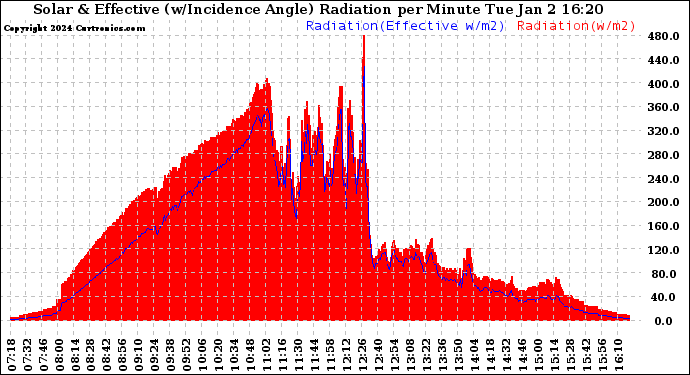 20240102 Solar Radiation & Effective Solar Radiation per Minute
