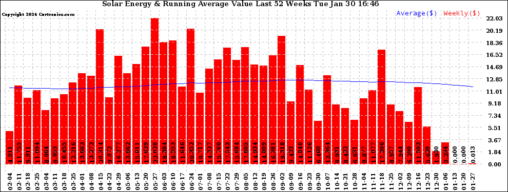 20240130 Weekly Solar Energy Production Value Running Average Last 52 Weeks