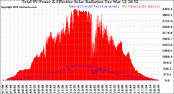 20240312 Total PV Panel Power Output & Effective Solar Radiation