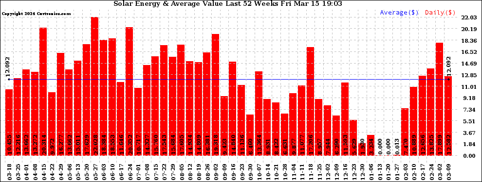 20240315 Weekly Solar Energy Production Value Last 52 Weeks