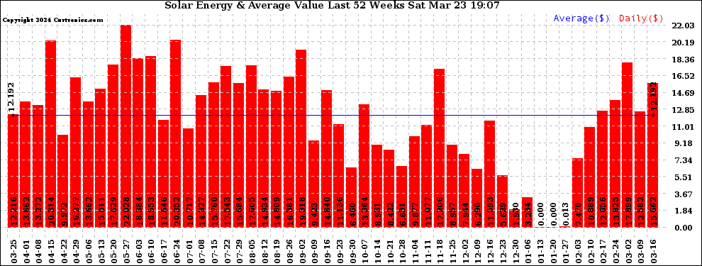 20240323 Weekly Solar Energy Production Value Last 52 Weeks