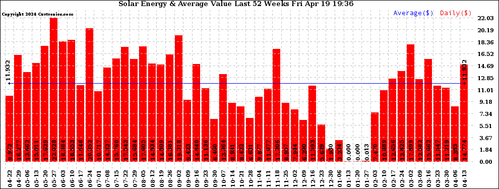 20240419 Weekly Solar Energy Production Value Last 52 Weeks