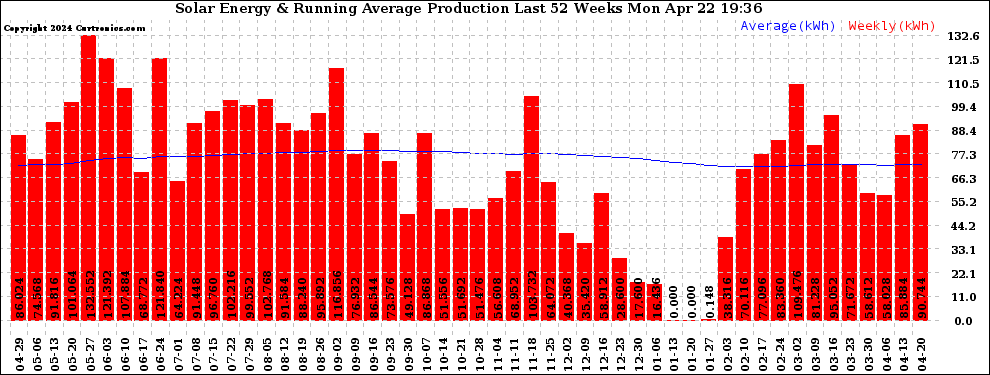 20240422 Weekly Solar Energy Production Running Average Last 52 Weeks
