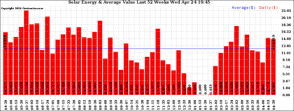20240424 Weekly Solar Energy Production Value Last 52 Weeks