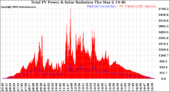 20240502 Total PV Panel Power Output & Solar Radiation