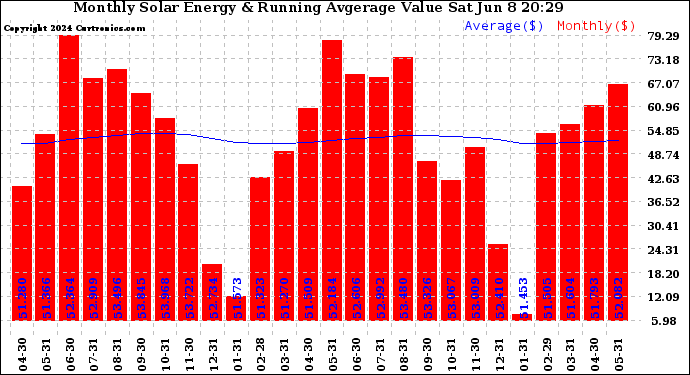 20240608 Monthly Solar Energy Production Value Running Average