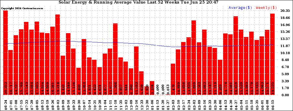 20240625 Weekly Solar Energy Production Value Running Average Last 52 Weeks
