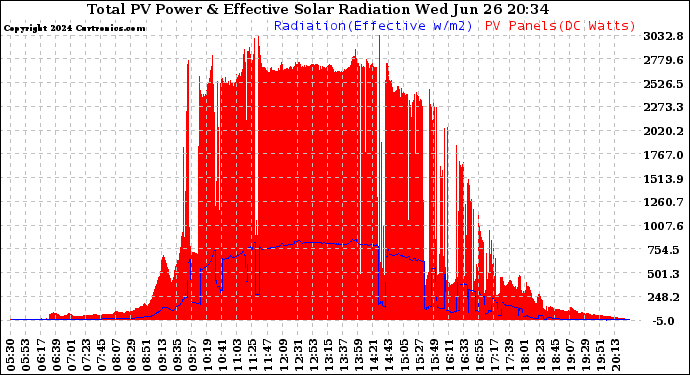20240626 Total PV Panel Power Output & Effective Solar Radiation