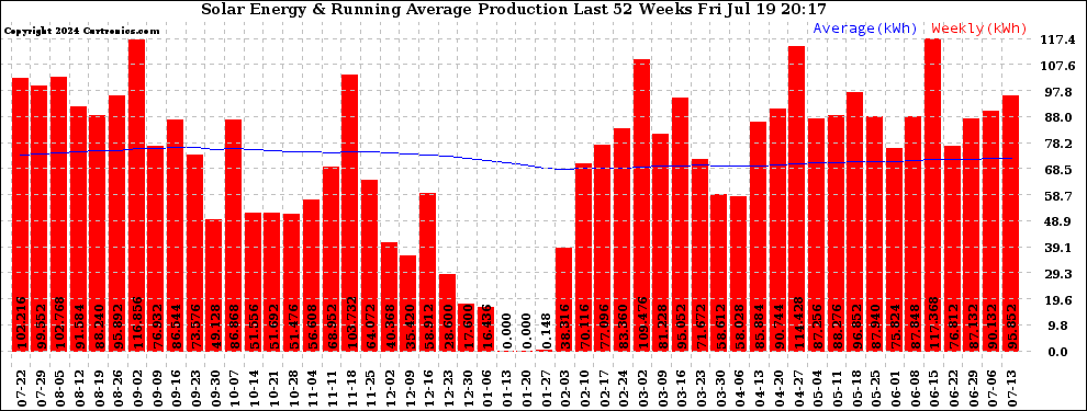 20240719 Weekly Solar Energy Production Running Average Last 52 Weeks