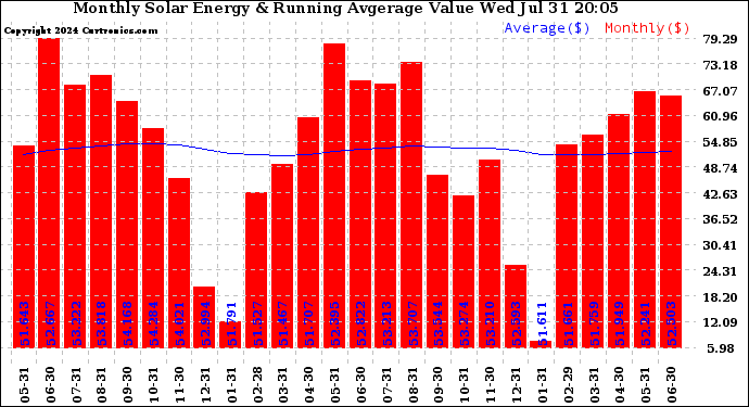 20240731 Monthly Solar Energy Production Value Running Average