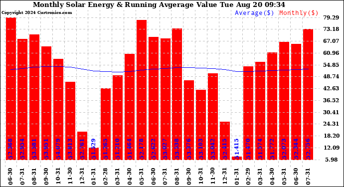 20240820 Monthly Solar Energy Production Value Running Average