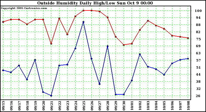 Milwaukee Weather -- 20051008 Outside Humidity Daily High/Low -- Brought to you by curtronics.com