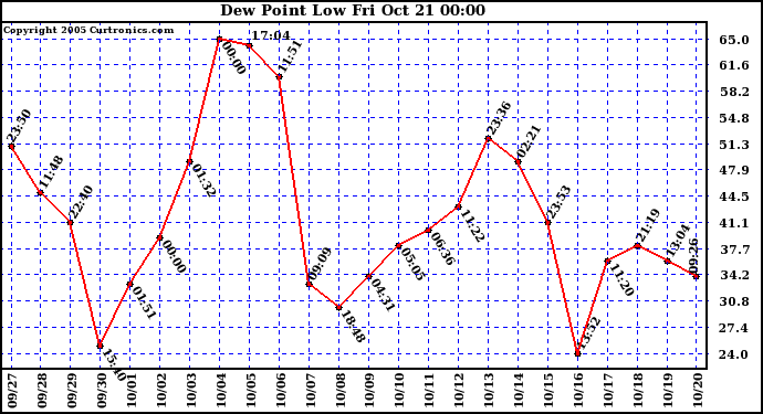Milwaukee Weather -- 20051020 Dew Point Low -- Brought to you by curtronics.com