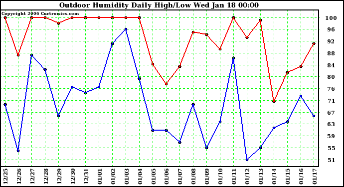 Milwaukee Weather -- 20060117 Outdoor Humidity Daily High/Low -- Brought to you by curtronics.com