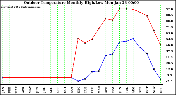 Milwaukee Weather -- 20060122 Outdoor Temperature Monthly High/Low -- Brought to you by curtronics.com