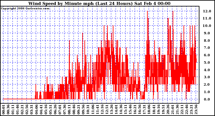20060203 Wind Speed by Minute mph (Last 24 Hours)
