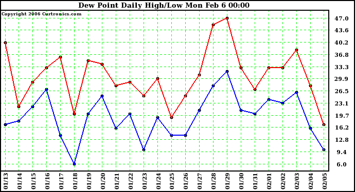 Milwaukee Weather -- 20060205 Dew Point Daily High/Low -- Brought to you by curtronics.com