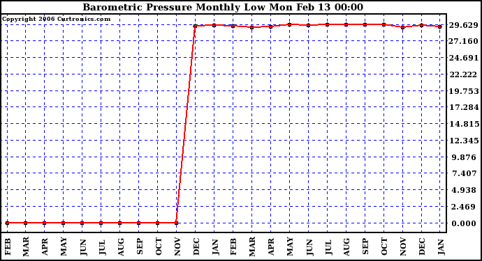 Milwaukee Weather -- 20060212 Barometric Pressure Monthly Low -- From curtronics.com by Curt Blank