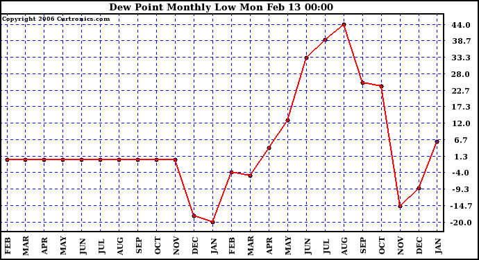 Milwaukee Weather -- 20060212 Dew Point Monthly Low -- From curtronics.com by Curt Blank