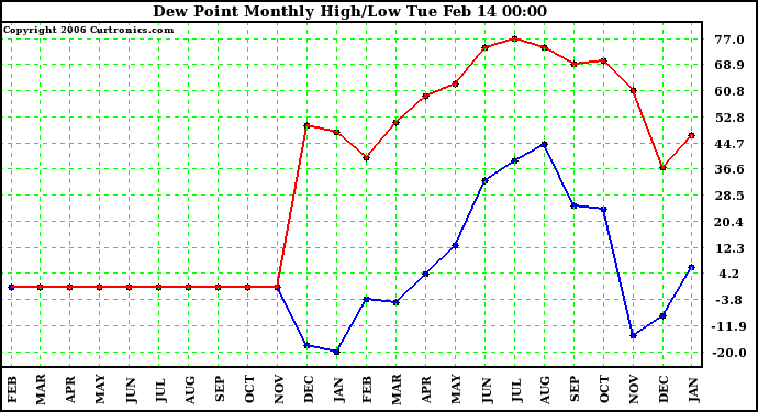 Milwaukee Weather -- 20060213 Dew Point Monthly High/Low -- From curtronics.com by Curt Blank