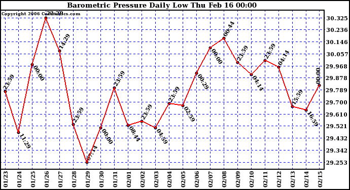 Milwaukee Weather -- 20060215 Barometric Pressure Daily Low -- From curtronics.com by Curt Blank